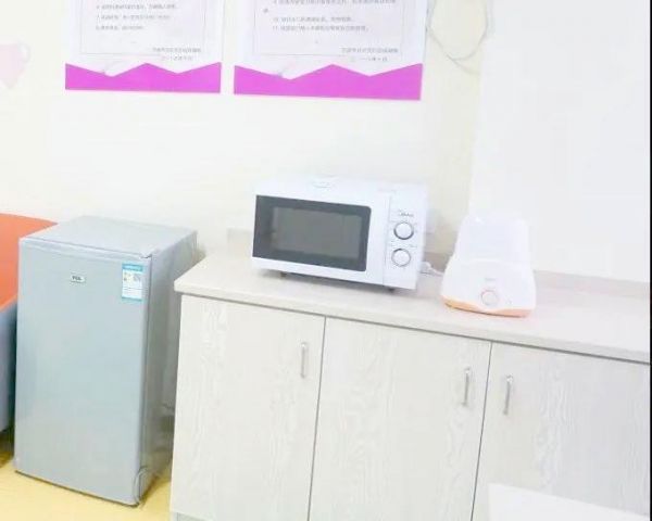 在专为婴儿尿布更换而设计的台子旁边,我们还精心设置了备餐区和盥洗区。这里配备了微波炉、温奶器、净水器和冰箱等设施,旨在为妈妈们提供便捷的冲泡奶粉条件,同时确保饮用和洗漱用水的温度适宜,让寒冷的冬天也能充满温暖。