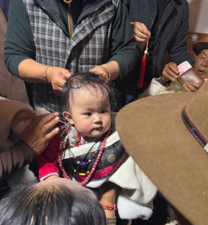 此次剃头仪式简朴庄重,既是孩童成长的重要纪念,也体现了当地传统民俗的传承与延续,展现了藏族传统礼俗的文化内涵。