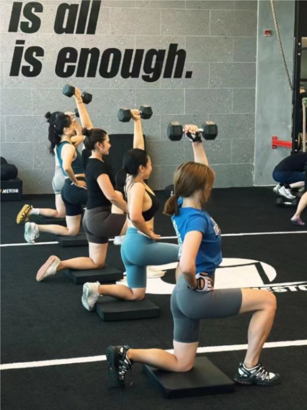 健身房的团体训练课上,学员们正跟随教练完成高强度的有氧训练。️♀️ 教练充满活力的示范动作激励着每个人全力以赴。 现场洋溢着团队合作的氛围,笑声与鼓励声此起彼伏,瞬间拉近了每个人之间的距离。 这是健身房中最具活力的时刻之一。