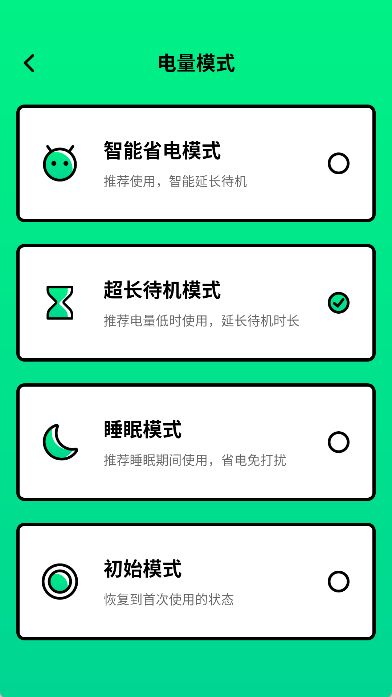 4. 点击“电量模式”提供了四种智能省电模式,我们可以自由选择。