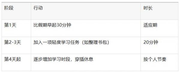 不要试图一天之内调整回开学作息,这只会增加挫败感。