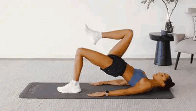 动作3、单腿臀桥提膝(坚持15次,休息20秒)