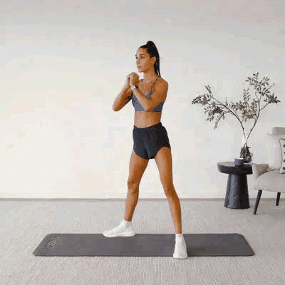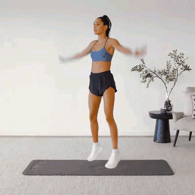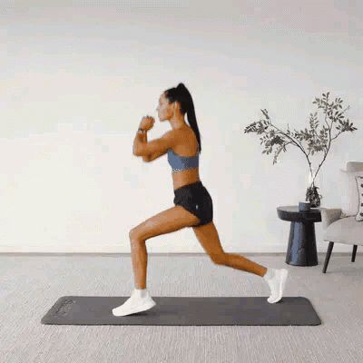 动作4、跳跃箭步蹲(坚持15次,休息20秒)