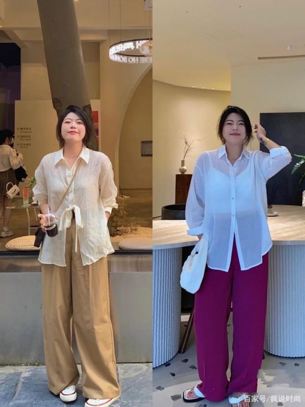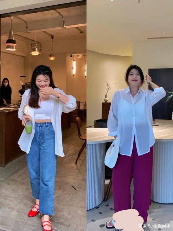 轻薄的上衣有很多风格可以选择,雪纺衫、或者面料轻薄的衬衫,以及雪纺元素的罩衫,都是日常搭配中必不可少的。对于130斤以上的姑娘来讲,面料轻薄的衬衫,是一种更加简约又百搭的风格。