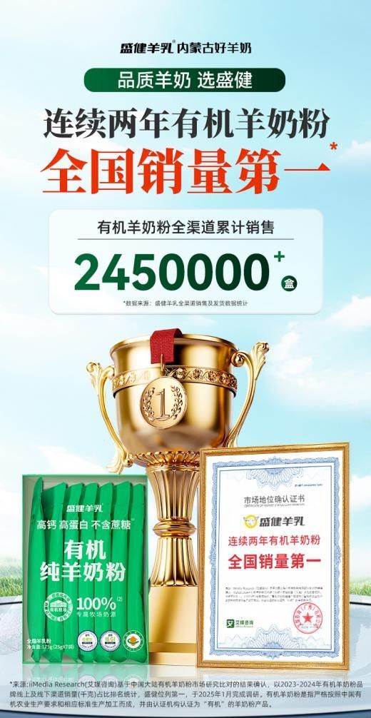 中国有机羊奶粉全国销量第一 盛健羊乳再获业界权威认证