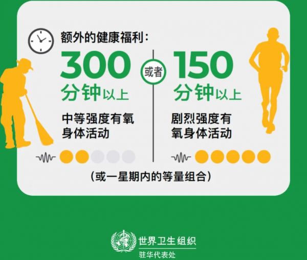 1.老年人应每周进行150-300分钟的中等强度有氧运动,或至少75-150分钟的剧烈强度有氧运动,还可以将等量的中等强度和剧烈强度的身体活动相结合,从而获得更大健康收益。