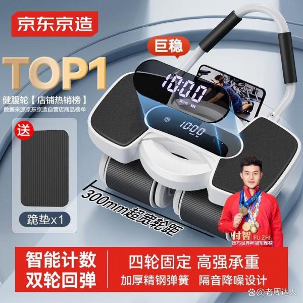 京东京造智能计数四轮健腹轮健身器,智能计数方便记录次数,四轮稳,性价比高。