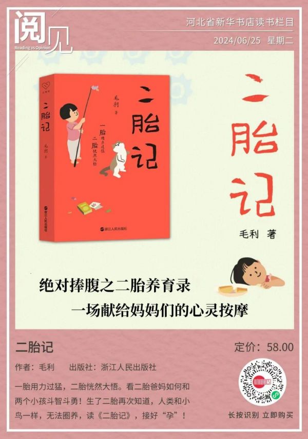 孩子是上帝派到凡间的小天使,每个孩子哇哇坠地时,父母最朴素期待的都是他(她)平安健康就好。由浙江人民出版社出版,知名作家毛利著作的《二胎记》,详细记录了她在二胎旅程中的心路历程。