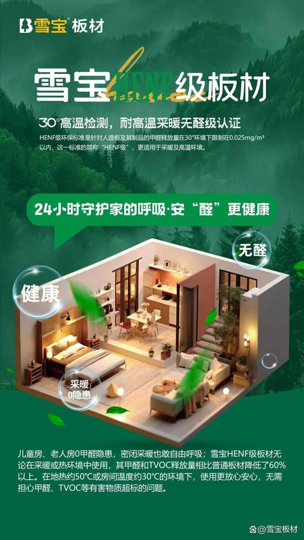 雪宝HENF级板材——24小时守护家的呼吸