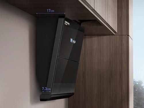 不仅如此,云米Super 2 Pro 油烟机的安装位置比普通的油烟机更低、距离烟源更近,进烟口距离台面仅为275毫米,油烟产生瞬间就会被快速吸收,解决跑烟难题。