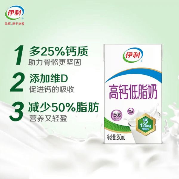 推荐入手:伊利高钙低脂牛奶整箱250ml*21盒