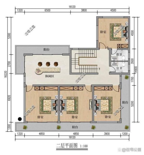 二层3间朝南卧室,连通阳台,搭配上全景落地窗,采光通风性较好,室内不再阴暗潮湿。