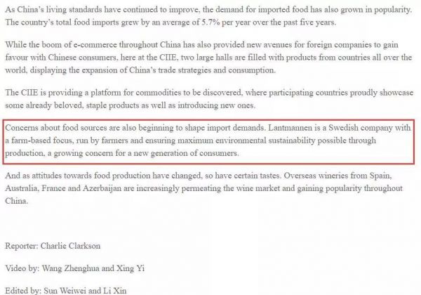 2018年11月5日,首届中国国际进口博览会在上海国家会展中心盛大开幕,汇聚了来自全球130多个国家和地区的3000余家企业,共展出超过5000件在中国市场首次亮相的展品。在这场盛会中,兰特曼恩集团(LANTMANNEN)的亮相尤为引人注目。该集团秉承着在生产过程中追求环保与和谐的理念,同时深刻洞察新一代消费者的健康需求,其独特的展台设计和展品吸引了众多观众的目光,也引起了《中国日报网》记者Charlie Clarkson的浓厚兴趣。