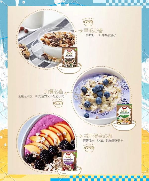 随着中国民众生活品质的提升,大家对健康饮食的追求也日益增强。在这个背景下,北欧早餐麦片类目的佼佼者——具有107年历史的北欧麦片品牌兰特曼恩集团,其即食麦片产品AXA备受消费者青睐。这款麦片包装精致,果干与坚果的含量相当可观,采用低温烘焙技术制作,非油炸,更健康。其甜度主要源自果干和坚果的自然甜味,膳食纤维丰富,配料新鲜,均衡搭配,无任何添加。无论是干吃、泡牛奶还是配酸奶,AXA系列麦片都能满足您的口味。正因如此,AXA麦片不仅深受瑞典运动明星的喜爱,更是减肥人士的理想之选。