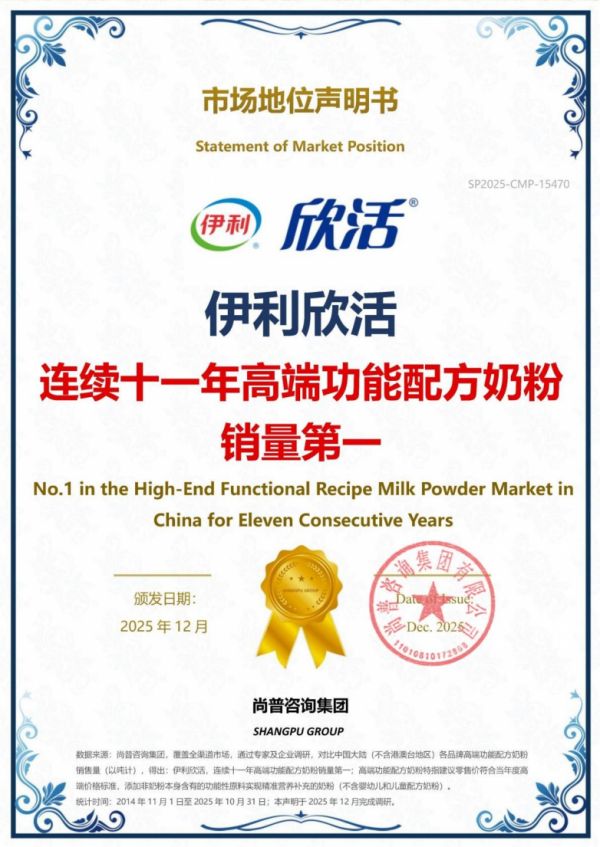 选择礼物,品牌与品质是信任的基石。伊利欣活系列并非普通成人奶粉,它融合了现代营养科技与中式食养智慧。其产品荣获如“国际乳联(IDF)乳品创新奖—人类营养乳制品创新奖”等全球行业权威认可,并且伊利欣活已连续十一年高端功能配方奶粉销量第一,这充分证明了其在市场与专业层面的双重领先地位。送给长辈,送的不仅是一罐奶粉,更是一份经过科学验证、市场检验的健康承诺。