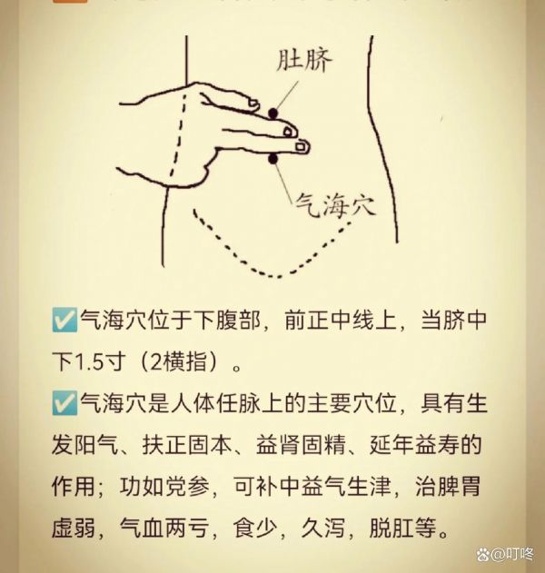 气海穴同样在下腹部前正中线上,位于脐中下1.5寸。