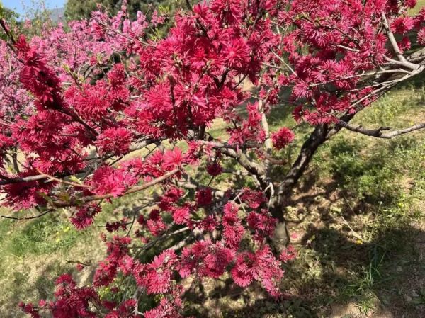 桃花浅深处,似匀深浅妆。绚丽多姿的各色桃花在园内竞相开放,有的枝条松散低垂,树冠如同伞盖,还有的枝条紧密直指天空,犹如冲天火炬……千姿百态的多种桃树,共同绘制出一幅充满浪漫气息的粉红桃花林。
