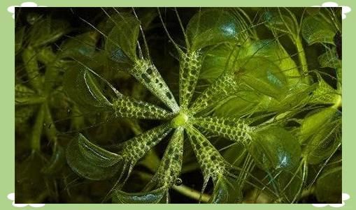 囊泡貉藻,学名“Aldrovanda Vesiculosa”,其捕虫夹结构在水生环境中有效捕捉小型水生动物。与维纳斯捕蝇草有亲缘关系,结构独特而有效。