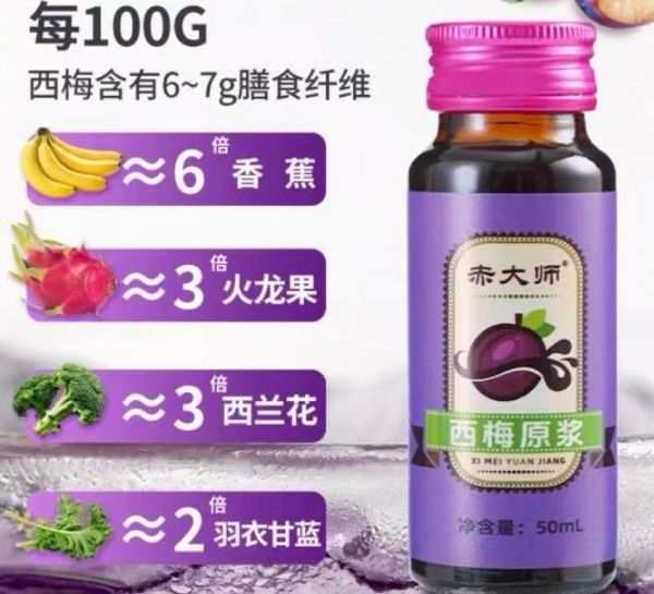 鲜摘鲜榨 + 0 添加:锁住西梅的 “全营养”:做原浆这事,赤大师是真 “实在”。每年西梅成熟季,果园工人凌晨 4 点就下地,专挑表皮紫透、捏着有弹性的熟果,没熟的、有小坑的全筛掉,就跟咱们挑自家吃的水果一样较真。摘下来的西梅立刻装进恒温箱,1 小时内送进工厂,从果子离树到榨汁完成,全程不超过 6 小时 —— 这速度比外卖送汉堡还快,就怕慢一步,西梅里的膳食纤维、维生素这些 “护肠宝贝” 就流失了。