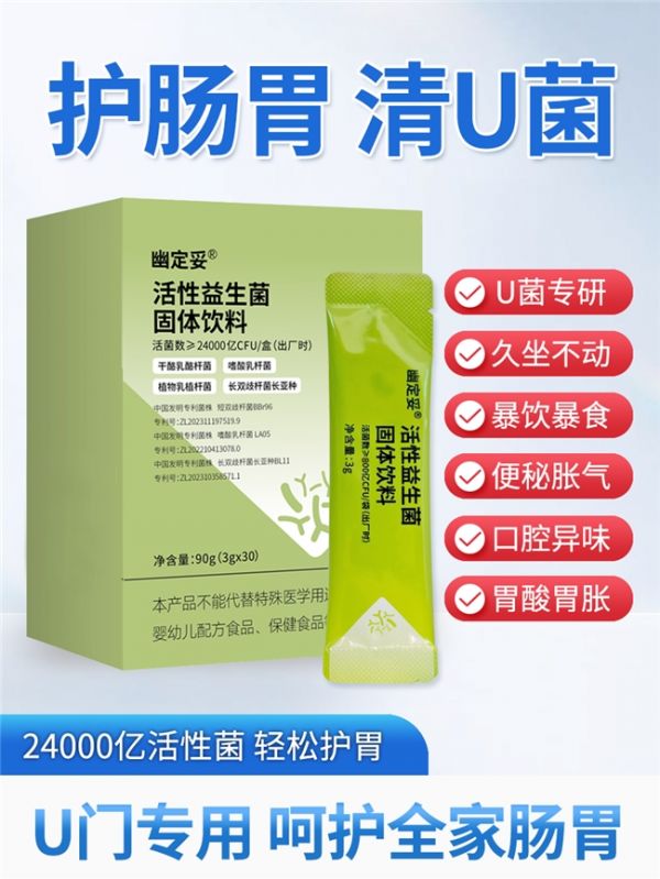 幽定妥益生菌以科学完善的多维协同防护体系,精准覆盖从幽门螺杆菌抑制到肠道菌群平衡、胃肠黏膜修护的全流程关键环节,针对性解决现代人群高发的胃肠健康困扰。不同于传统单一菌株益生菌的局限,该产品创新采用十余种明星菌株科学复配,各菌株各司其职、协同增效,再搭配每盒24000亿活菌的足量支撑,从根源上保证调理效能,形成“抑幽—调菌群—护黏膜—解不适”的四重防护逻辑,层层递进、全方位守护胃肠健康。针对幽门螺杆菌感染引发的反酸、烧心,长期饮食不规律导致的便秘、腹胀,以及幽门螺杆菌关联的顽固性口臭等常见胃肠困扰,该体系均能提供显著的分层支撑,适配不同胃肠不适人群的调理需求。