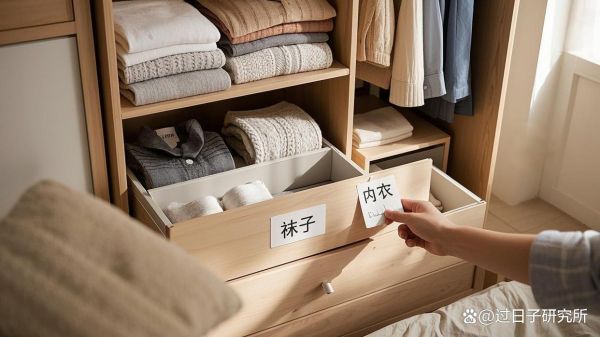 分类收纳:按照衣物的类型、颜色、季节等进行分类收纳,方便查找和搭配。例如,将T恤、衬衫、毛衣等分别收纳在不同的抽屉或收纳盒中。