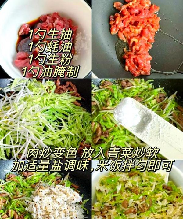 所需材料简单,剩米饭、牛肉、包菜和藜麦等,牛肉需要提前腌制。牛肉腌制时,用生抽、蚝油、生粉和食用油腌制五分钟,这样炒出的牛肉更加嫩滑。包菜需切得细薄,以便更好地吸收调味料。炒制过程中,火候控制在中小火,这样包菜不会发黄或焦糊,口感更佳。米饭在炒制前需打散并回软,以确保受热均匀,味道更加浓郁。