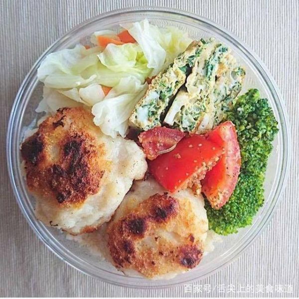 减脂餐2:鸡蛋菜饼+甘蓝胡萝卜泡菜+西蓝花+煎土豆泥+西红柿。这道减脂餐味道较为清淡,适合作为早餐,泡菜可以开胃,鸡蛋菜饼也适合早上尚未完全苏醒的胃,土豆泥可以提供一上午的卡路里。