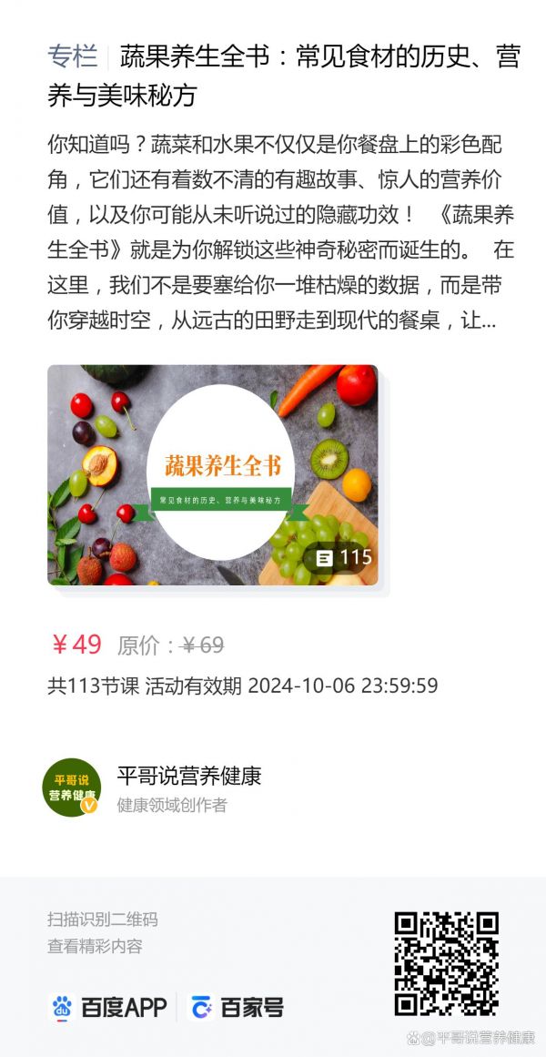 专栏链接:蔬果养生全书:常见食材的历史、营养与美味秘方