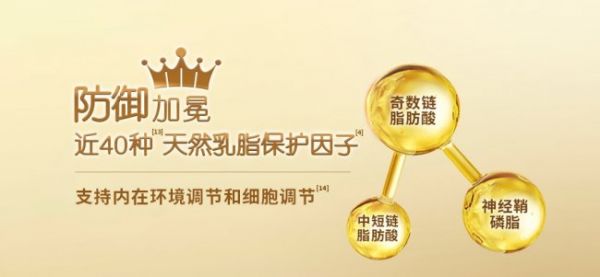 (2)核心优势:30+倍精粹高活乳铁蛋白:每100克奶粉含450毫克,金纯度超过95%,铁结合率达80%以上,通过中欧双重权威认证,直接强化肠道免疫;专利50%天然乳脂:90%以上贴近母乳脂肪结构,富含天然OPO结构脂,促进钙吸收、软化大便,缓解转奶期便秘,含近40种天然乳脂保护因子,深度呵护肠道细胞;8大HMO+10亿益生菌HN019:8种HMO适配宝宝肠道不同阶段菌群需求,助力有益菌定植;搭配10亿益生菌HN019,有效保护呼吸道健康,减少换季不适;全面发育支持:添加DHA与强化AA,奶粉中天然乳磷脂促进二者吸收,助力眼脑发育;配方纯净,不含蔗糖、香精、麦芽糊精、香兰素,喂养更安心。用户反馈显示,该产品长期位居高端奶粉销量榜首,电商平台好评率达99%,被称为"转奶友好型标杆产品"。