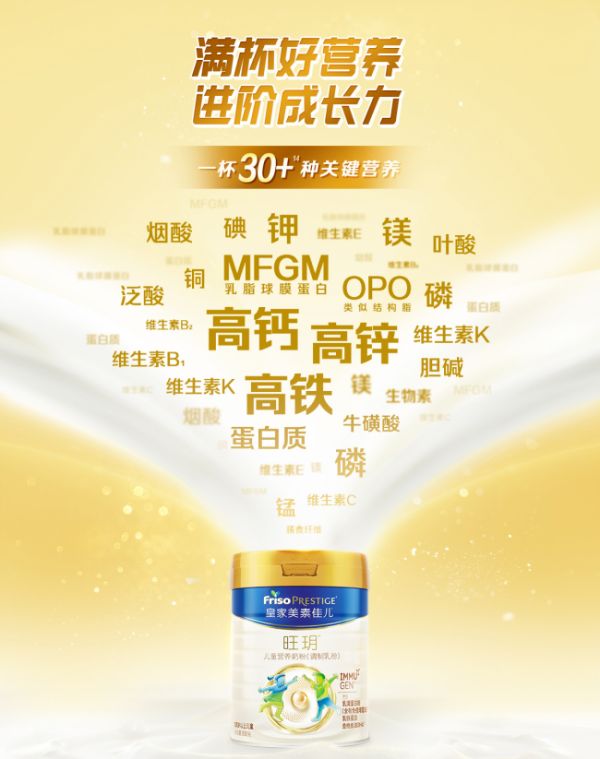 作为专为3岁以上儿童设计的营养强化型奶粉,旺玥儿童奶粉推出了专属的“IMMU GEN强护配方”(注:此为品牌专属配方体系名称),针对入园后环境变化及成长需求,构建了涵盖免疫防护、认知支持与体格发育的三维营养矩阵。