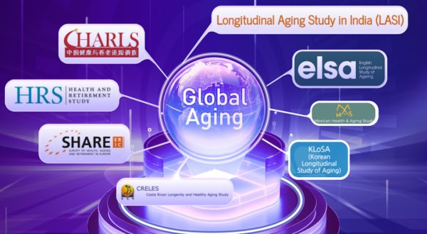 中国的 CHARLS、美国的 HRS、英国的 ELSA、欧洲众国+以色列的 SHARE、韩国的 KLoSA、墨西哥的 MHAS、印度的 LASI、哥斯达黎加的 CRELES。
