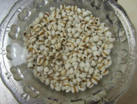 第二步,薏米事先放入水中泡一泡,控水,生姜切成片用,将处理好的猪筒骨放入在锅中,同时一次性加足水,放入薏米和生姜片;