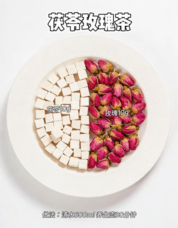 • 茯苓:宁心安神,搭配玫瑰能缓解焦虑,让情绪慢慢平稳下来