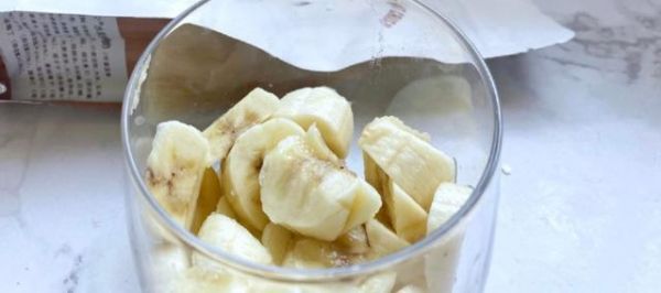 6:切好的香蕉块放入杯内,水果可以根据自己喜欢随意搭配。