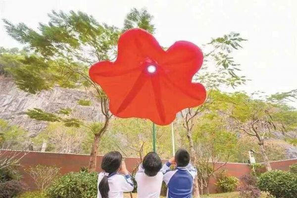 红岭深康的操场旁,有一朵引人注目的“解压大红花”。当师生靠近并对着“花蕾”倾诉时,它会根据声浪强弱缓缓绽放,仿佛在用心聆听。初一新生小雨(化名)是第一个被这朵花“治愈”的孩子。开学初,她总是眉头紧锁,沉默寡言。班主任姚湘依尝试谈心,效果却不明显。直到有一天,小雨兴奋地拉着姚老师来到操场边:“老师,这朵大红花能听我说话,我一讲,它就张开‘花瓣’拥抱我。”通过这朵花的互动,小雨找到了情感宣泄的出口,从孤独中慢慢走出。