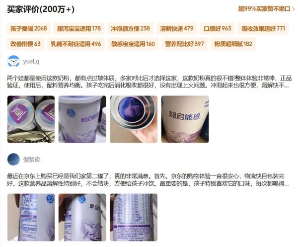 我们先来看真实反馈,有超过200万宝妈给这款无乳糖配方奶粉打出了真实评价,每一条评价,都是真切的爱子之心。