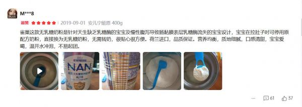 来自河南的宝妈说:“雀巢这款无乳糖奶粉,是针对天生缺乏乳糖酶的宝宝及慢性腹泻导致肠黏膜表层乳糖酶流失的宝宝设计。