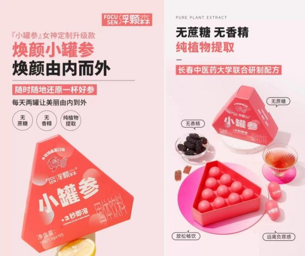 「Focusen浮颗森」是一家用科技力量重塑人参健康食品的品牌。专注研发功能至上、口感好吃、营养健康的人参功能性零食,开发人参新吃法,为消费者创造「花样人参」。