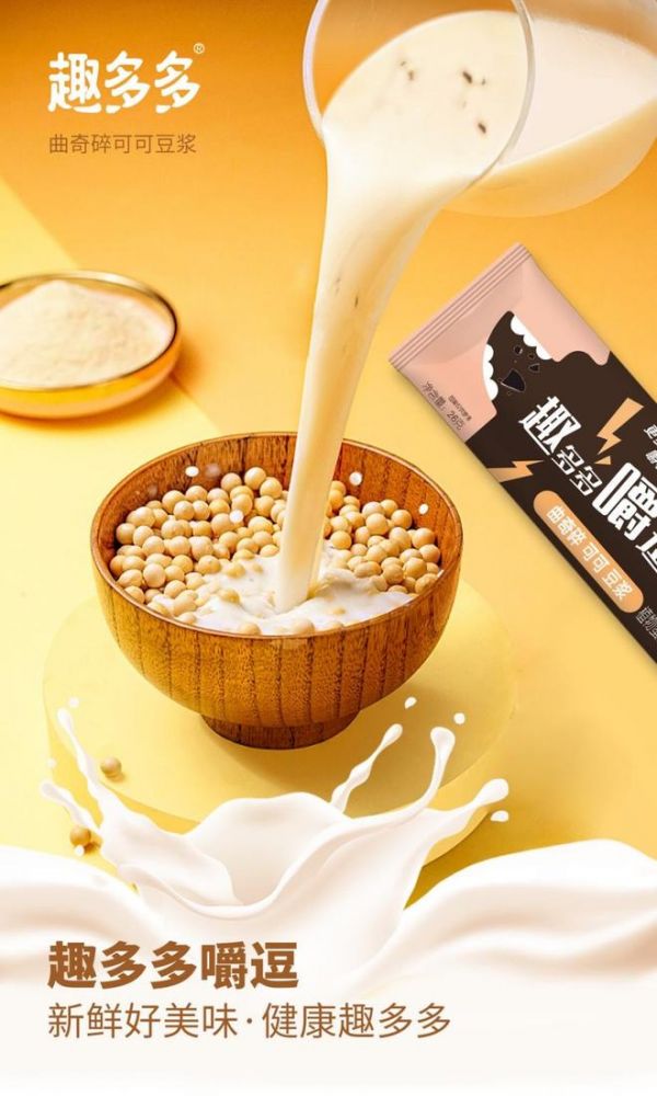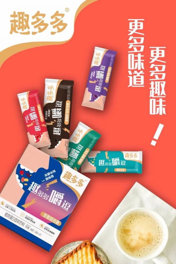 基于这样的洞察,趣多多将品类锁定在符合国人饮食需求与知名度高的豆浆品类之上,推出趣多多嚼逗豆浆,填补市场空白的同时,进一步满足消费者的饮用需求。