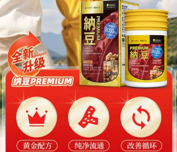 聚焦中老年血管健康,iSDG Premium纳豆8000含8000FU高含量纳豆激酶,去除维生素K2与嘌呤更安全。以单日8000FU纳豆激酶活性值直接对标高端需求,相当于市面4包纳豆的激酶含量。