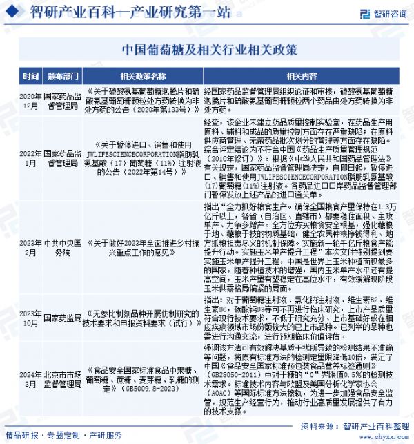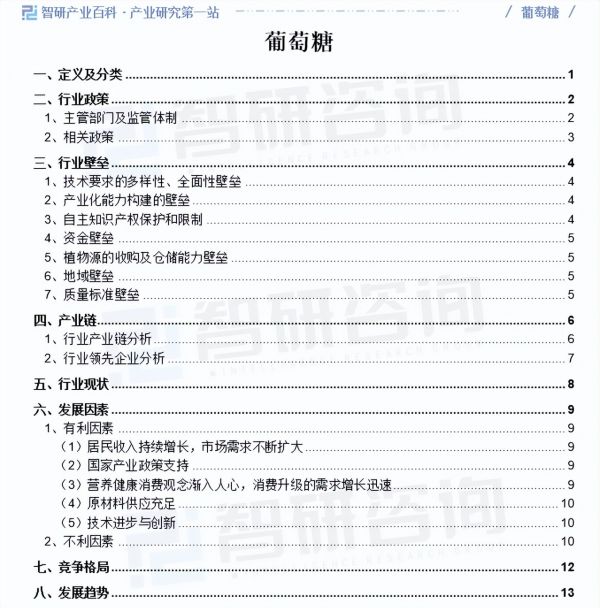 智研产业百科是智研咨询推出的产研工具平台,致力于为您提供全方位的百科式产业信息查询服务。智研咨询践行用信息驱动产业发展的企业使命,完善和丰富企业方法论,依托产业百科平台提升信息价值,持续为行业发展及企业投资决策赋能。葡萄糖产业百科作为葡萄糖产业一站式系统化研究工具,全面归纳了葡萄糖产业知识信息,内容涵盖葡萄糖产业的定义、分类、政策、产业链、竞争格局、发展趋势等,并依靠信息技术建立智能互链的行业知识图谱,为行研从业者及相关投资者提供深入的洞察力和全面的信息。