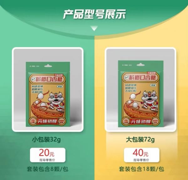 产品的核心卖点非常明显,就是传统槟榔的替代品,推出市面一个多月的时间,在全国各大城市都得到了不错的响应,有很多曾经吃槟榔的年轻人,之前一直苦于没有替代品,又需要槟榔带来提神,这次元味初醒的新型槟榔口香糖刚好解决了这一大问题。