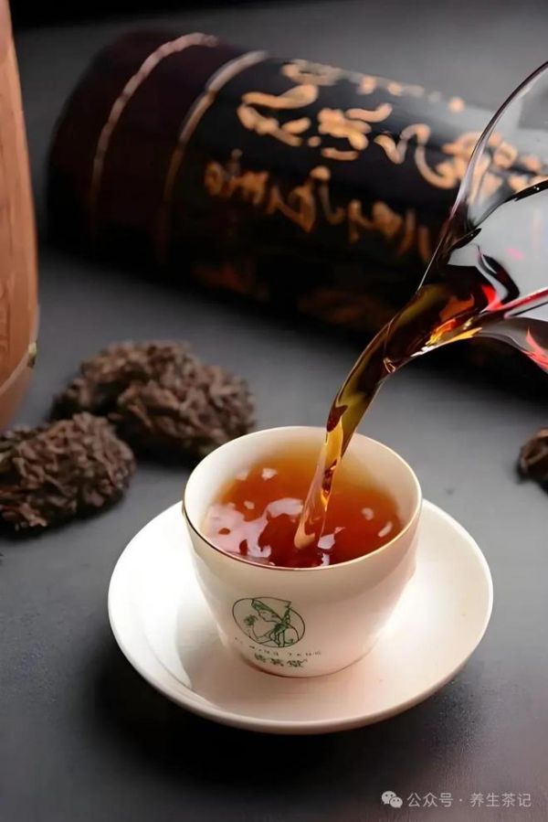 黑茶是后发酵茶,经过长时间的陈化过程。其茶汤色泽深褐或黑亮,香气独特,口感醇厚滑爽。黑茶具有降脂减肥、降血压血糖等功效,陈年老黑茶更是价值连城。普洱茶是最著名的黑茶之一。