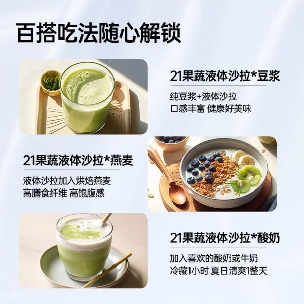 这款液体沙拉采用NFC非浓缩还原技术,完整保留了21种果蔬的原汁原味,0脂无添加,喝起来清爽自然。无论是作为代餐,还是日常补充维生素,都是不错的选择。