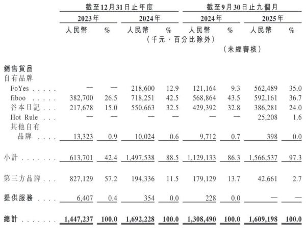 其中,fiboo是针对女性健康与营养而设的品牌,涵盖运动蛋白产品、功能性软糖及功能性饮品等多个系列。2023年、2024年及2025年前9个月(下称“各期”),fiboo品牌分别实现收入3.83亿元、7.18亿元和5.92亿元,在总收入中的占比分别为26.5%、42.5%和36.7%,是公司收入和占比最高的品牌。