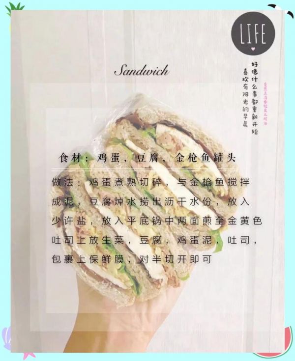 在家也能轻松享受健康三明治!追求精致生活的女孩们,偶尔也渴望放松一下。钟爱西式早餐,却苦于制作繁琐?想品尝三明治,又担心外面买的热量太高?这些困扰,本期主题将为你一一解决。现在,就教你如何制作简单快捷、低卡路里的健康三明治。提前准备几份不同口味,密封冷藏在冰箱,早上只需简单加热,即可轻松享用,让你不再错过元气早餐,睡懒觉也能享受美味与健康!