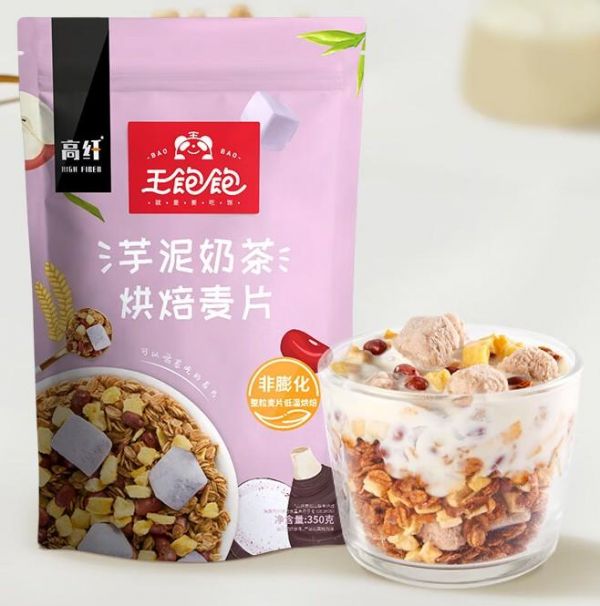 王饱饱的芋泥奶茶烘焙即食燕麦片,是早餐桌上的一份独特享受。这款燕麦片不同于传统的膨化麦片,而是采用了整粒麦片低温烘焙的方式制作,不仅保留了麦片原有的营养成分,而且在口感上更加酥脆可口。每一口都能感受到芋泥奶茶的独特香味,回味无穷。而且,它特别标明0添加白砂糖,使用了更健康的甜味来源,适合追求健康饮食的朋友们。每包350g的容量,既能满足日常所需,又不会有过多的负担。无论是作为早餐还是下午茶的小零食,都非常合适。