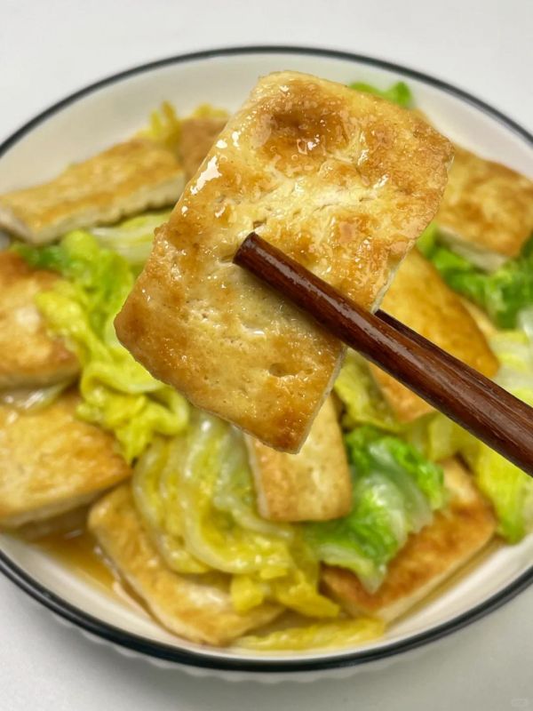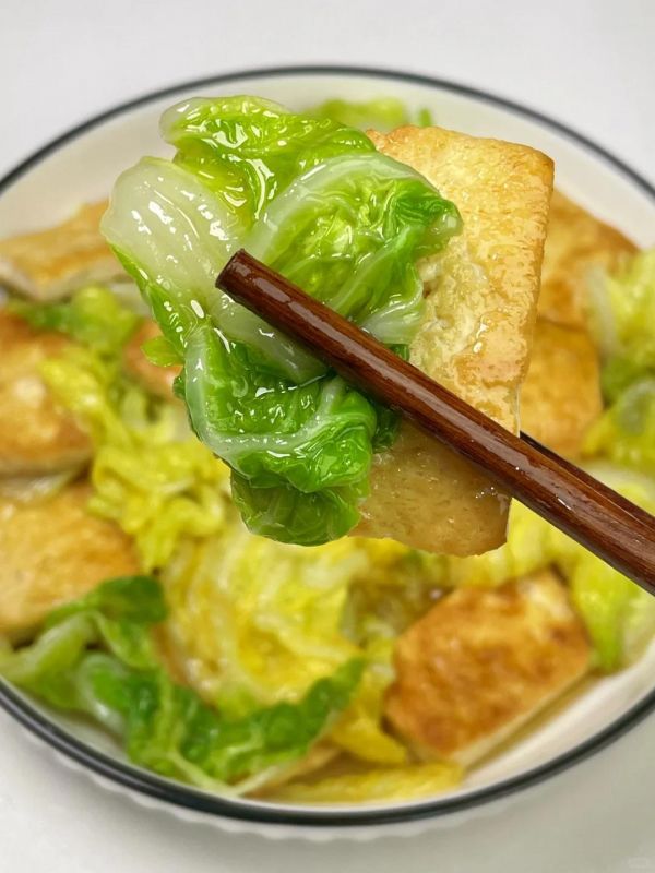 老豆腐吸饱汤汁后超入味,娃娃菜的清甜中和油腻感,吃完胃里暖乎乎的!