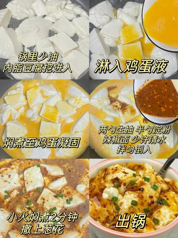 这菜做起来也快手,豆腐鸡蛋一煎,调个酱汁一淋,几分钟就出锅。
