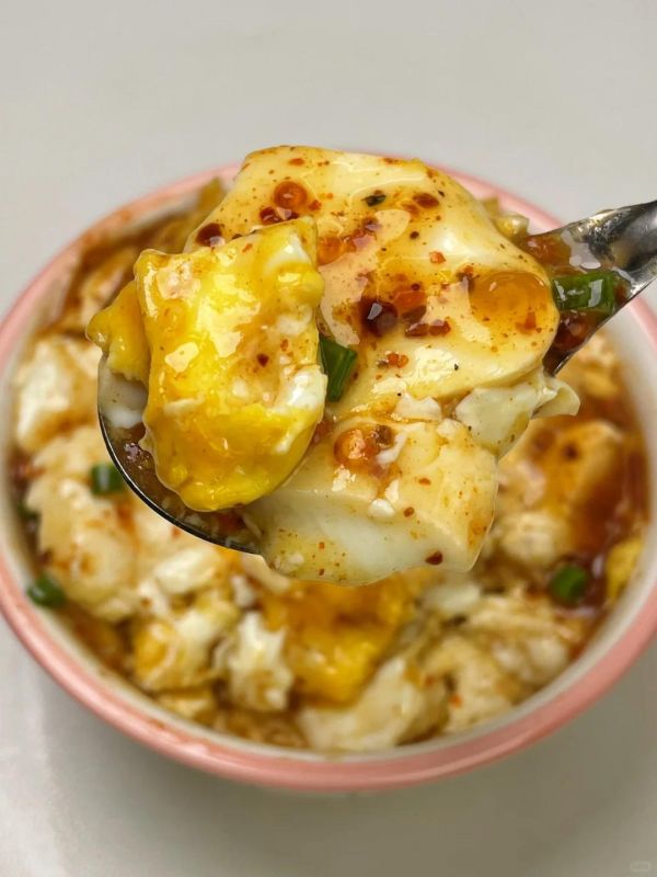 豆腐嫩到在舌尖打滑,香辣酱汁配上duangduang的鸡蛋,比麻婆豆腐还过瘾!